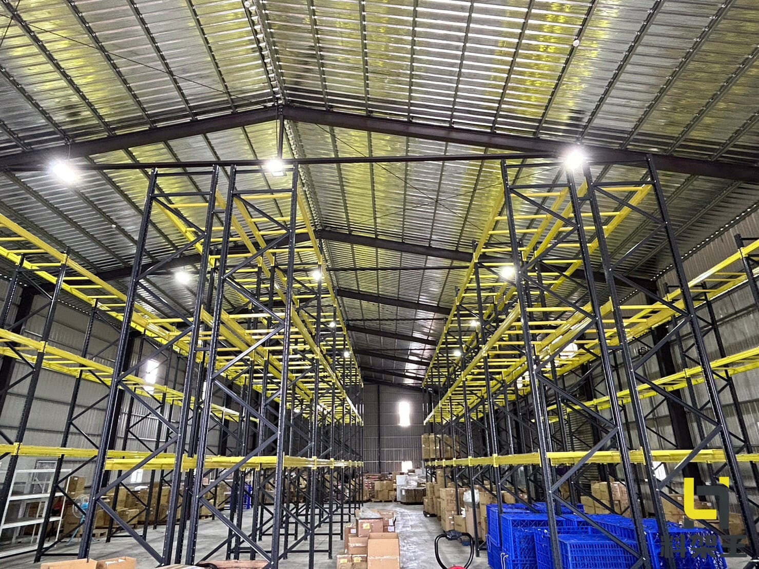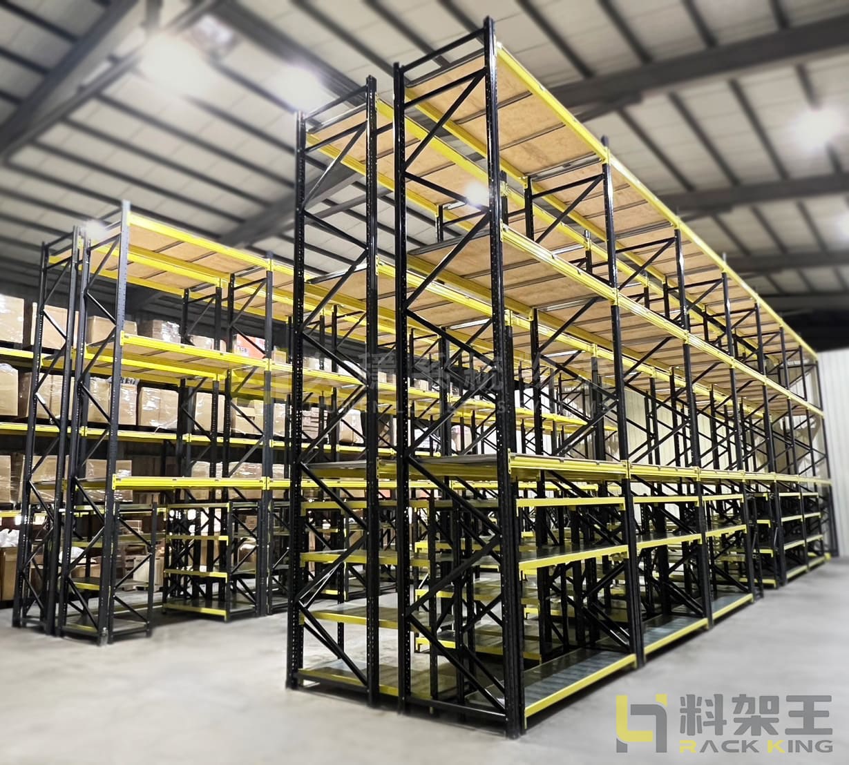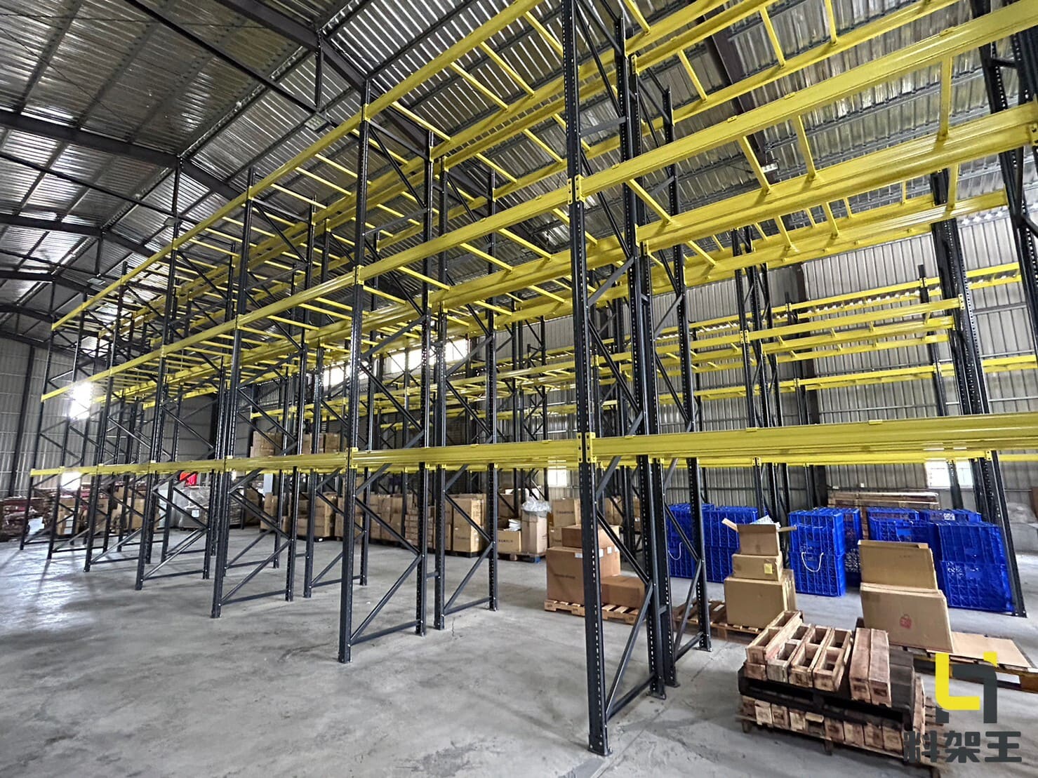 重型倉儲架,利用棧板作為單位來儲存商品,主要由標準規格的立柱、橫梁和跨梁搭建而成,可直接將棧板放置於橫梁上以存放物品。配合使用如合板、鋼製層板、特製層板或網狀層板等,便於存放各種尺寸的商品、設備或紙箱,從而有效利用重型貨架的空間。