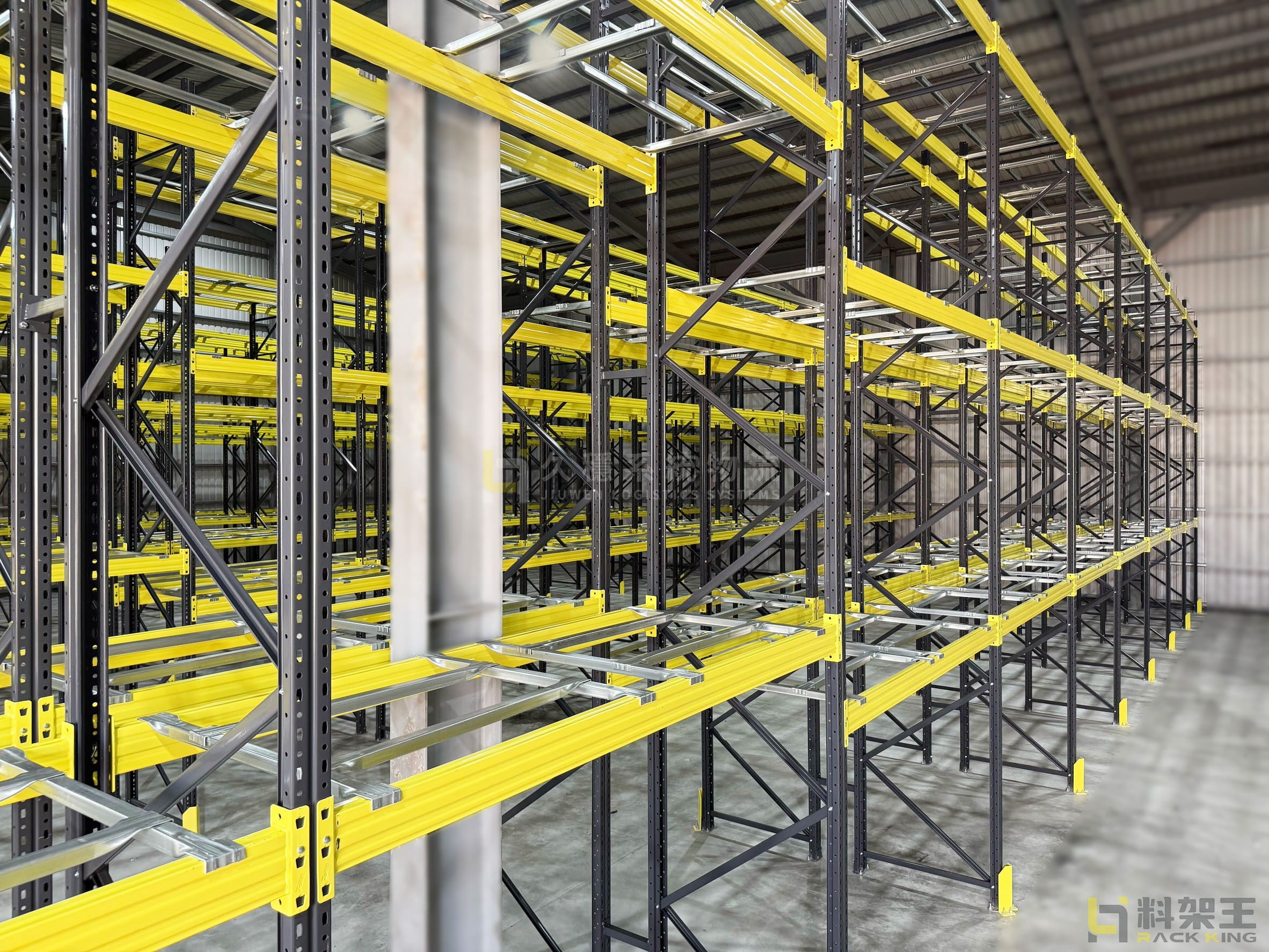 這種重型貨架採用非焊接結構,便於拆裝,而且『久穩物流倉儲』提供的重型架立柱具有高慣性截面,確保了出色的承載能力。每層貨架可承受 1,800 至 5,000 公斤的荷重,而整個架子的荷重範圍可達 9,000 至 30,000 公斤,並可依客戶需求量身訂製。在進行專案評估時,『久穩物流倉儲』的專家會綜合考慮荷重要求、架子尺寸、倉庫通道空間和堆高機的揚升高度等因素,以確保提供最適合的重型架規格。