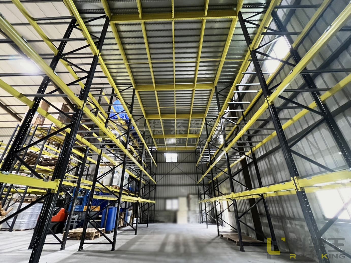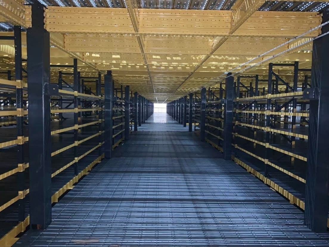 「閣樓式貨架」在貨架系統中以其高度的變化性和靈活度著稱。這種貨架是在重型貨架的基礎上增加了主樑和次樑結構,並鋪設鍍鋅鋼板作為樓面。這與傳統的工法相比,後者通常使用 C 型鋼作為骨架並鋪設木質夾板。相比之下,閣樓式貨架的跨距更大,樓層承重能力更強,而且未來廢棄和拆除時更為方便。